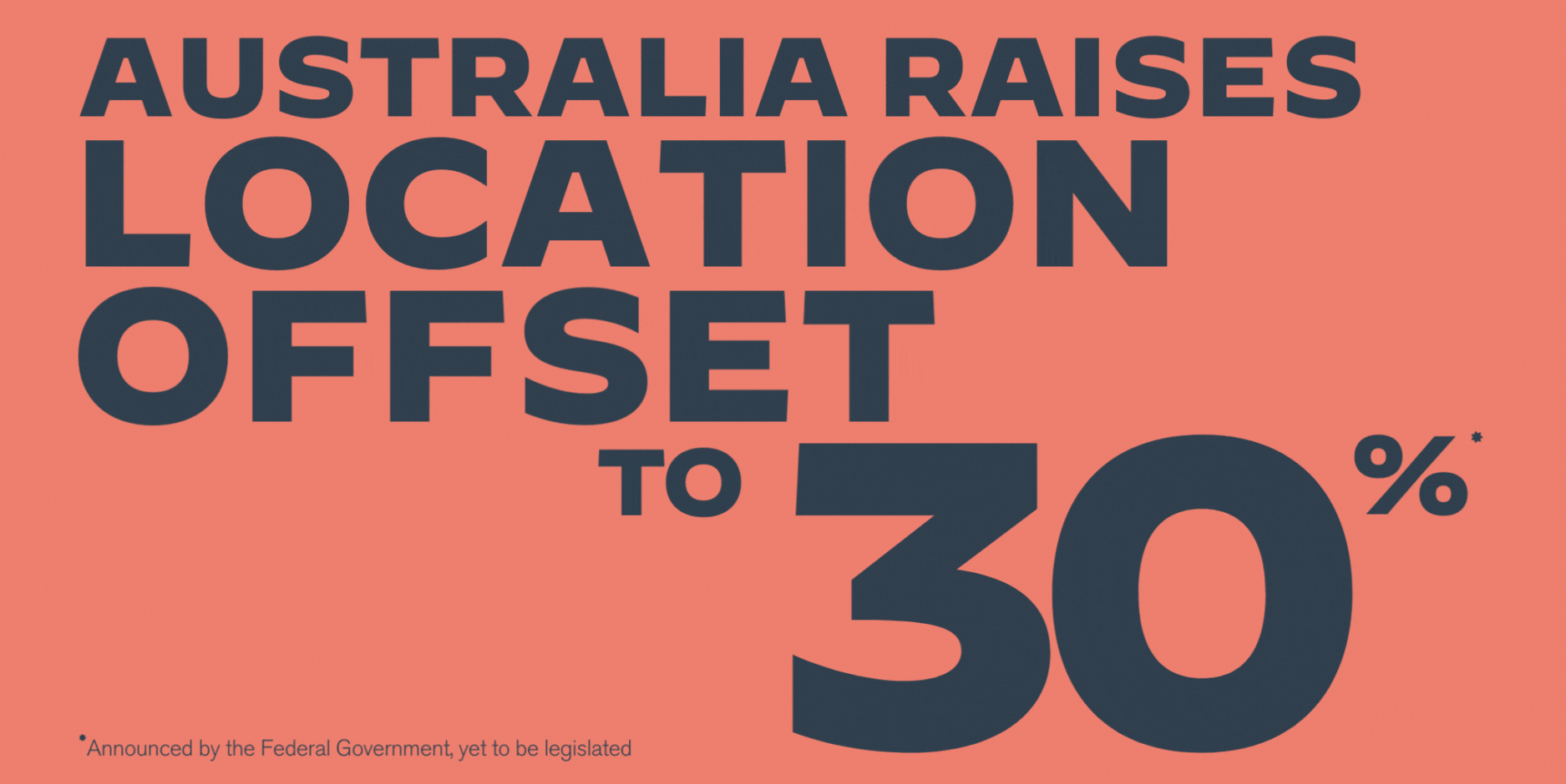 The Location Offset will now align with the 30% PDV Offset and ensures Australia remains globally competitive.