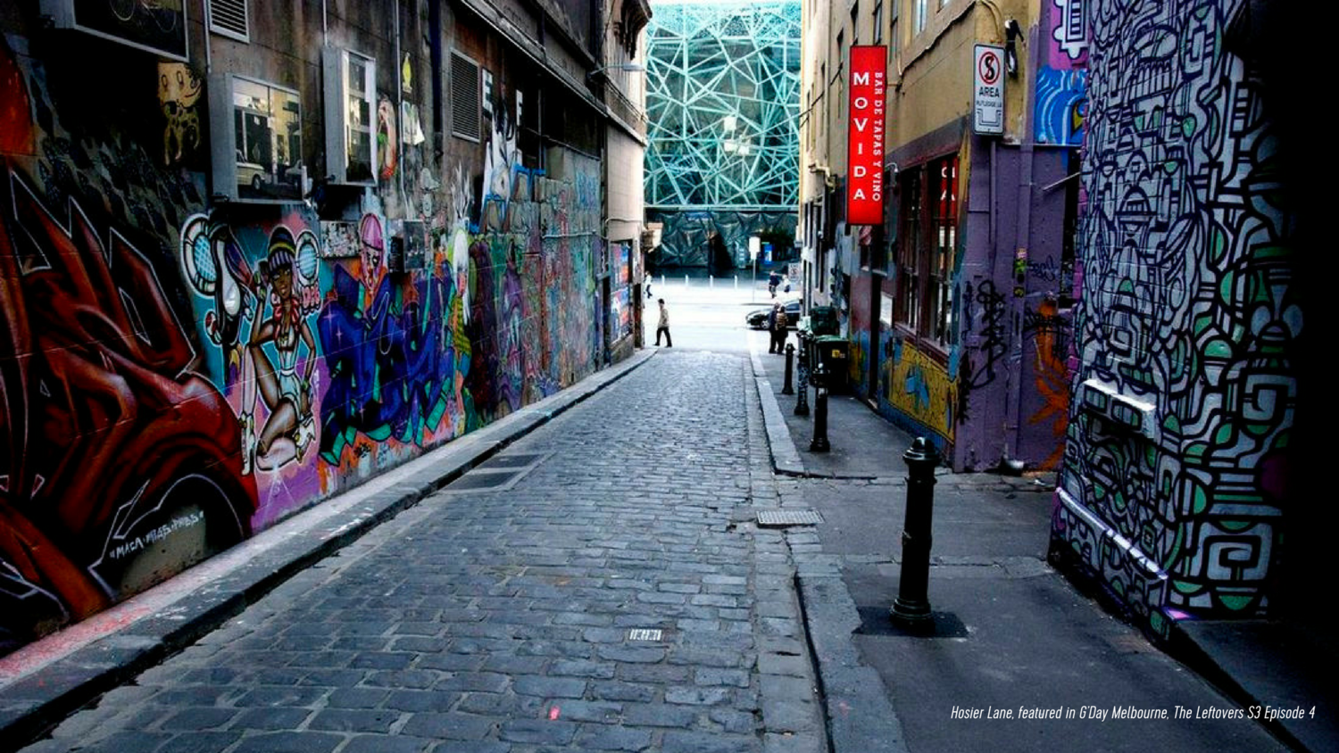 Hosier Lane, featured in G’Day Melbourne, Episode 4 of The Leftovers Season Three