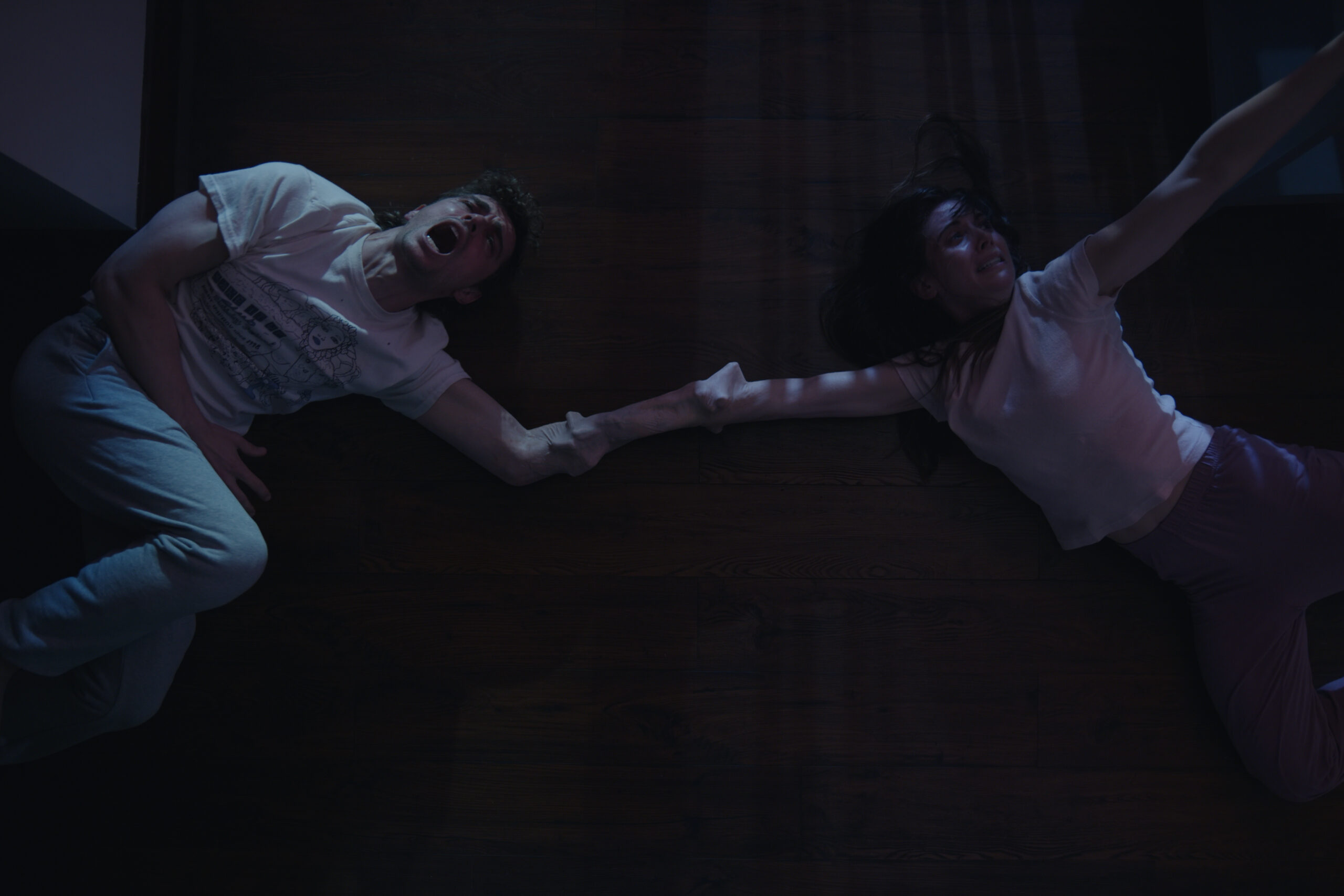 The first sequence unfolds at the start of the third act, when an invisible force violently drags Millie and Tim together in the middle of the night. As they resist, their arms begin to fuse in a painful, sinewy tangle of flesh and bone. The second, more emotionally charged sequence appears at the film’s climax, where the couple fully surrenders to their fate. As they embrace, their bodies merge in a transformation that’s designed to be both beautiful and horrifying.