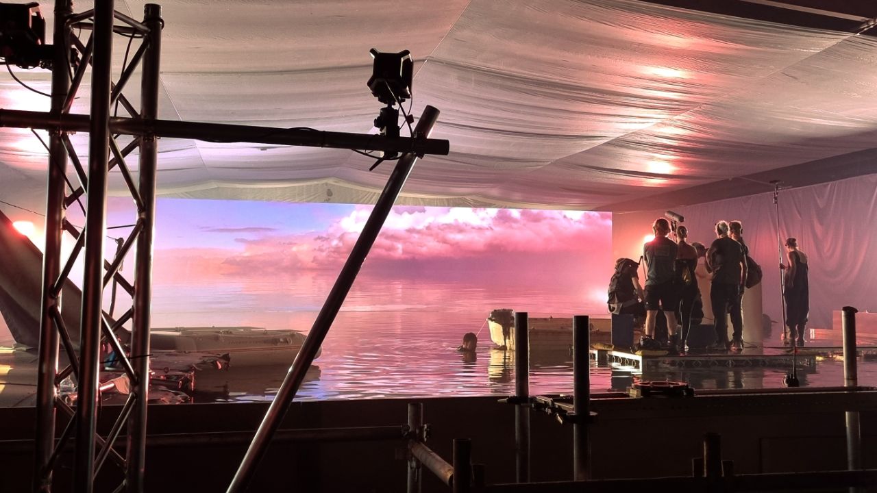 A major challenge was the integration of a 40-metre water tank – the largest in the Southern Hemisphere. Maintaining precision camera tracking required frequent recalibration, with crew members literally wading into the tank to ensure seamless operation between the physical and virtual environments.