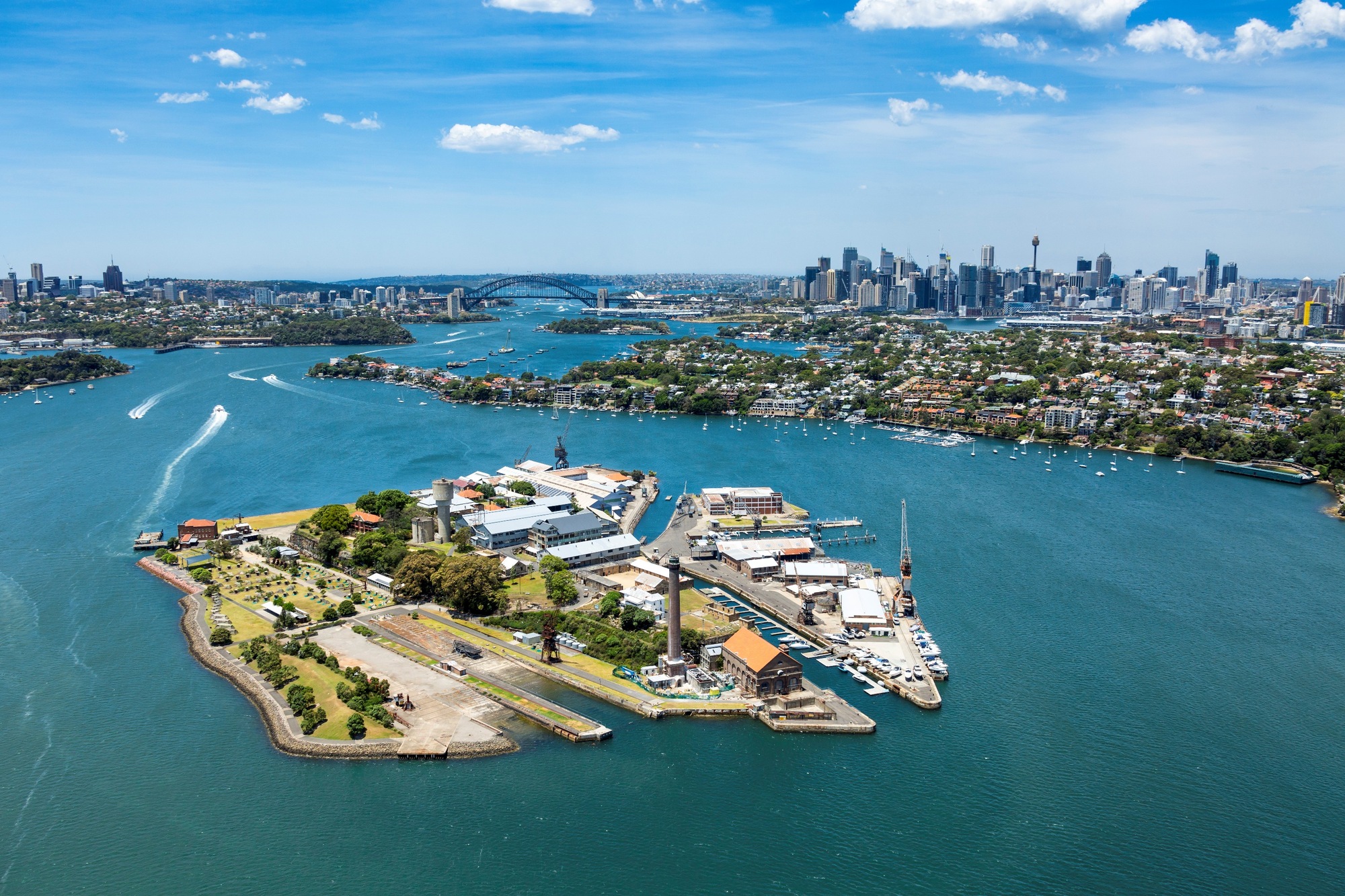 Cockatoo Island is located in the centre of Sydney Harbour with easy access from downtown Sydney and the Parramatta River.