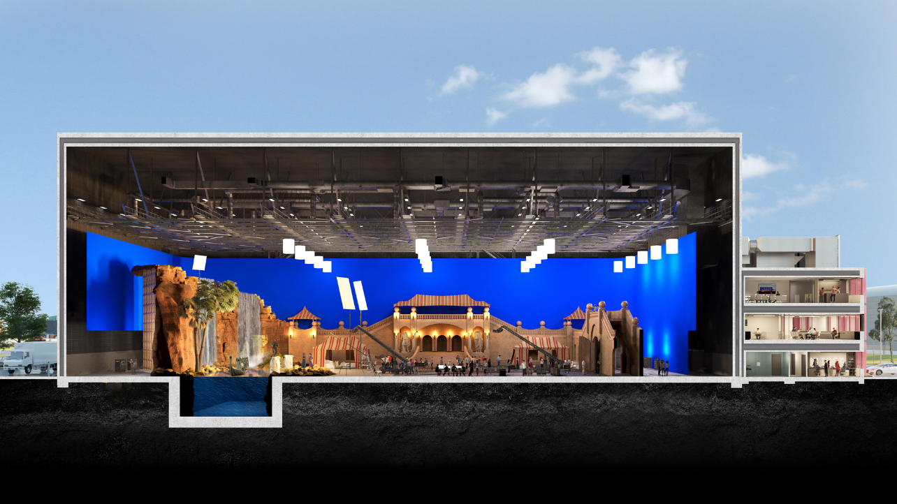 Docklands’ 3,700 sq m (40,000 sq ft) super stage with water pit is one of the biggest in the Southern Hemisphere. We have five other stages ranging from 743 sq m (8,000 sq ft) to 2,323 sq m (25,000 sq feet). We have two LED volumes – one measuring 12 m tall x 88 m long (40 ft x 289 ft) in Stage 1, the other measuring 8 m tall x 21 m long (26 ft x 68 ft) in Stage 3. Both are operated by NantStudios.